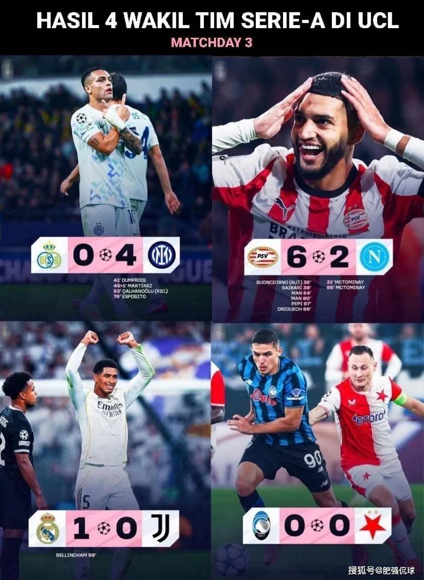 尤文客场0:1小负皇马已经算是不错的结果,可那不勒斯2:6惨败荷甲埃因霍温,亚特兰大主场0:0被捷克球队布拉格斯拉维亚逼平实在是令人难以接受!征战欧联杯的罗马同样爆冷,主场1:2不敌弱旅比尔森胜利,巧合的是这支球队同样来自捷克联赛。两支意甲球队主场面对两支捷甲弱旅却打出了一平一负的战绩,匪夷所思!
